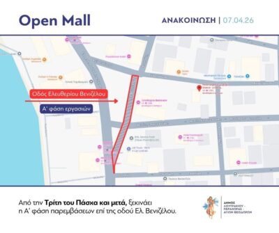 Ο Δήμος Λουτρακίου – Περαχώρας – Αγίων Θεοδώρων ενημερώνει τους πολίτες ότι το έργο «Ανοιχτό Κέντρο Εμπορίου Λουτρακίου» (Open Mall) εισέρχεται στην Α’ φάση παρεμβάσεων επί της κεντρικής οδού Ελευθερίου Βενιζέλου. [...]