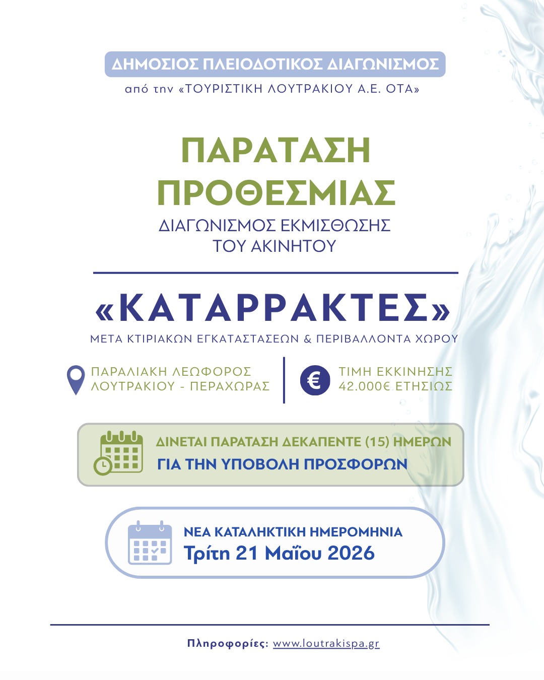 📎 Δείτε την προκήρυξη και όλες τις λεπτομέρειες: https://www.loutrakispa.gr/sites/default/files/kataraktes-2026-ext.pdf