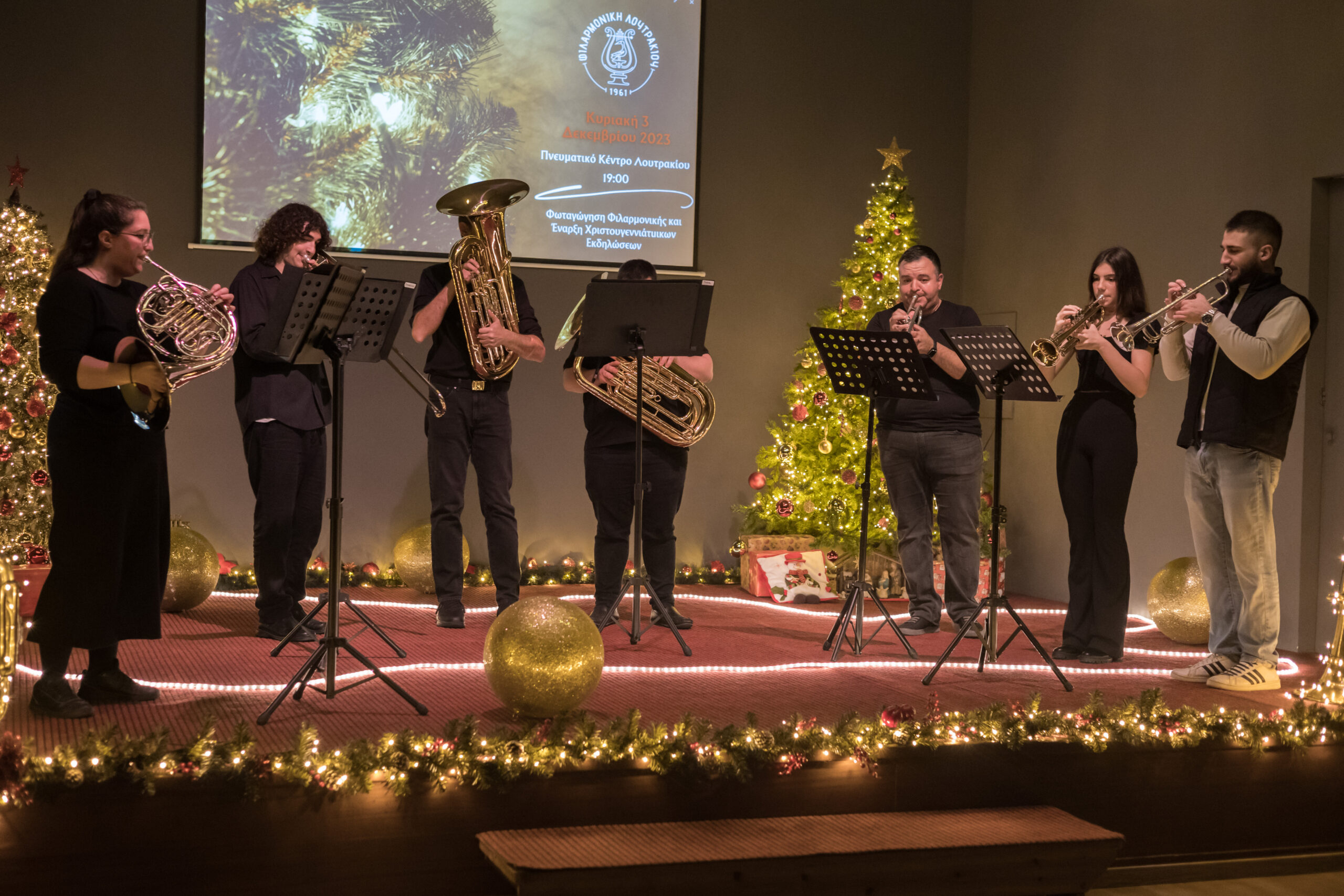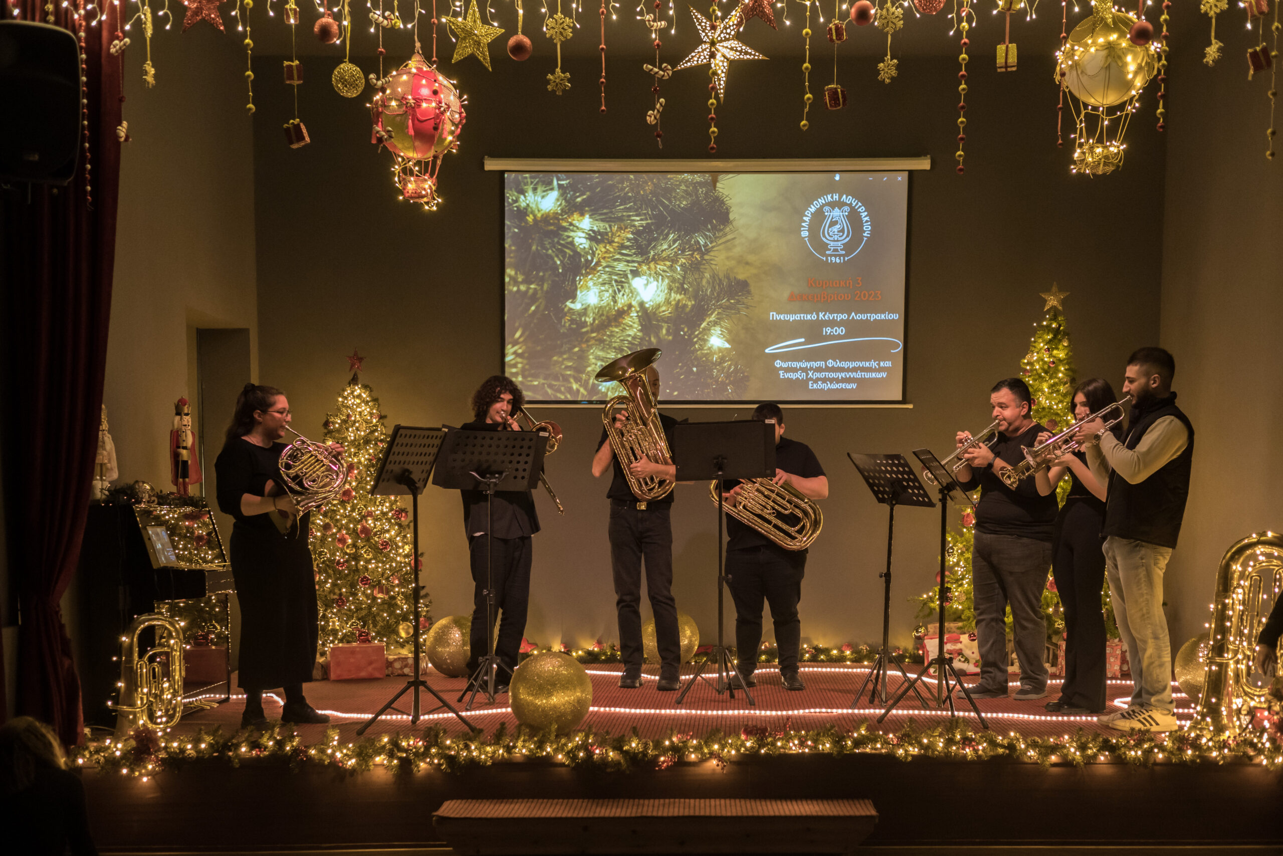 Στο πνεύμα των ημερών, η χορωδία της Φάλιας Παπαγιαννοπούλου από τη Μαδριγάλειο Μουσική Σχολή, η Μικτή Χορωδία Λουτρακίου με μαέστρο το Γρηγόρη Παντελέων, η μπάντα και το κουιντέτο χάλκινων πνευστών της Φιλαρμονικής, πλημμύρισαν με μελωδίες τους εσωτερικούς και εξωτερικούς χώρους του κτηρίου.