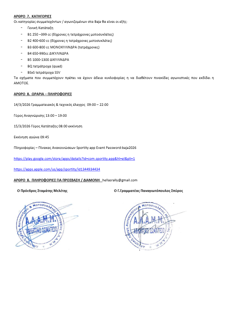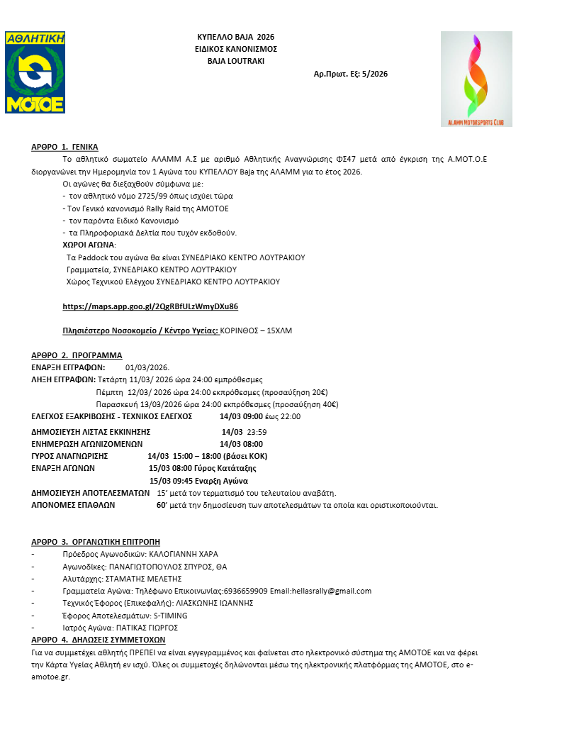 Baja Λουτράκι – Ειδικός Κανονισμός