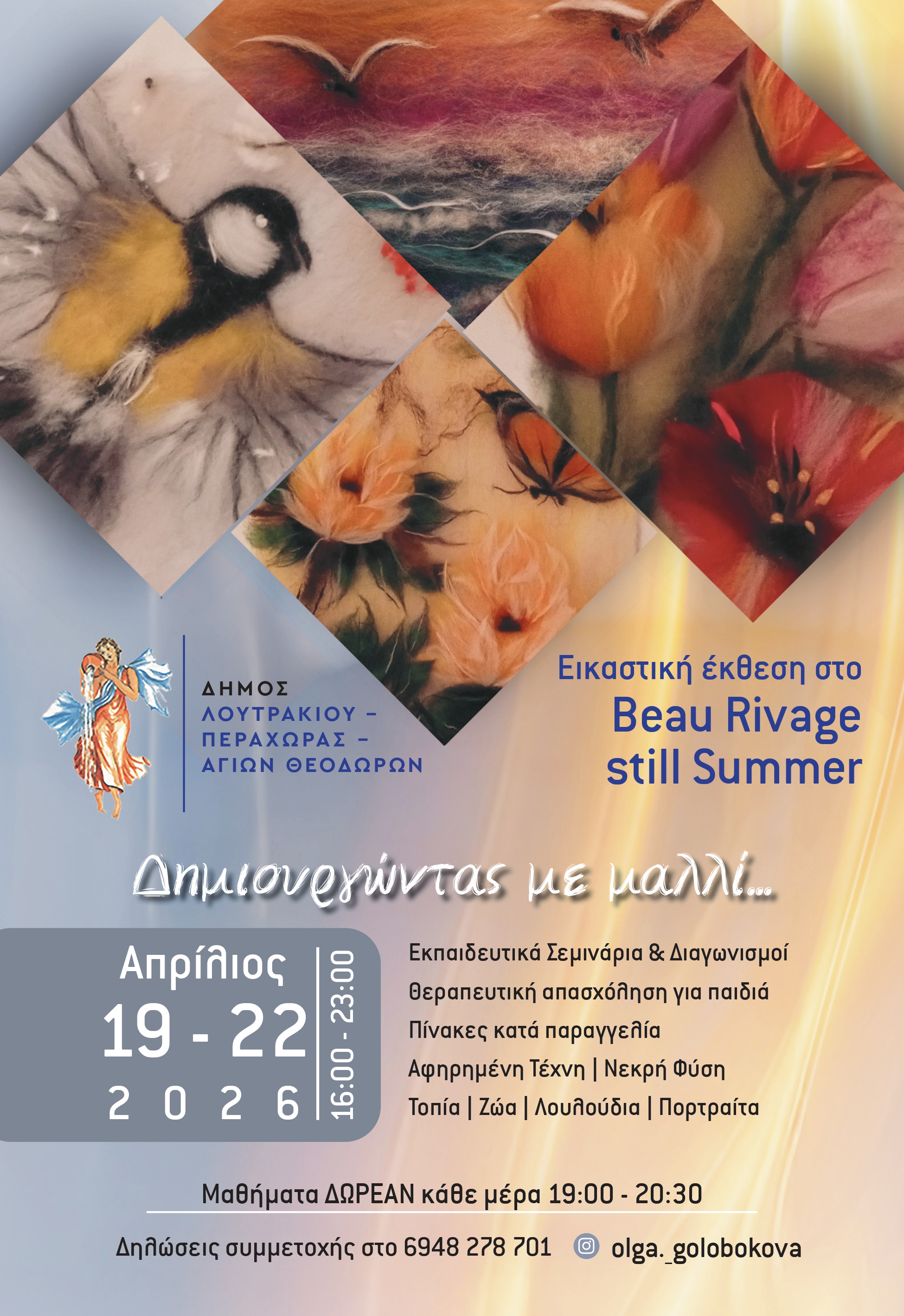 Ο Δήμος Λουτρακίου – Περαχώρας – Αγίων Θεοδώρων φιλοξενεί την εικαστική έκθεση με τίτλο «Δημιουργώντας με μαλλί…», μια μοναδική καλλιτεχνική εμπειρία αφιερωμένη στην τέχνη του μαλλιού (felt art).