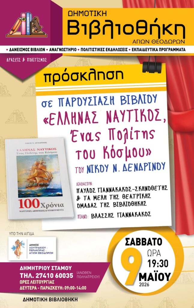 Σας περιμένουμε να τα πούμε από κοντά, να μιλήσουμε για το βιβλίο και να δοκιμάσουμε λιχουδιές που θα προσφέρουν μέλη της ομάδας Experience Perachora Corinthia καθώς και μέλη της Ομάδας Συνεργασίας Σ.Ε.Ο του Τ.Τ. Λουτρακίου.